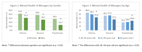- Managers aged 50 and over are less affected by psychological distress and use less psychotropic medication than managers aged 18-34;