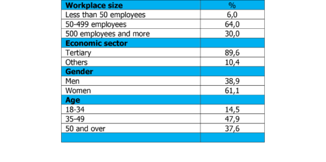 Cycle-1 data collection covers the period 2019-2021 (n=3025), cycle-2 2020-2022 (n=3495), cycle-3 2021-2023 (n=2946) and cycle-4 2022-2024 (n=1785). The response rate varied between 37% and 63% depending on the cycle. The following table presents the main socio-demographic and workplace characteristics of this sample.